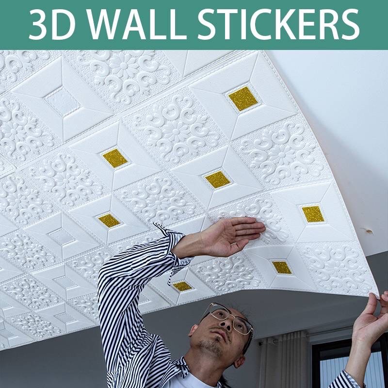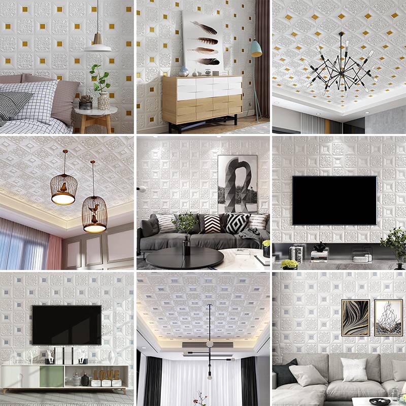 xốp dán tường dán trần có sẵn keo bóc ra là dán dày 3mm kt 70x77cm cho căn phòng sang trọngbóc là dán