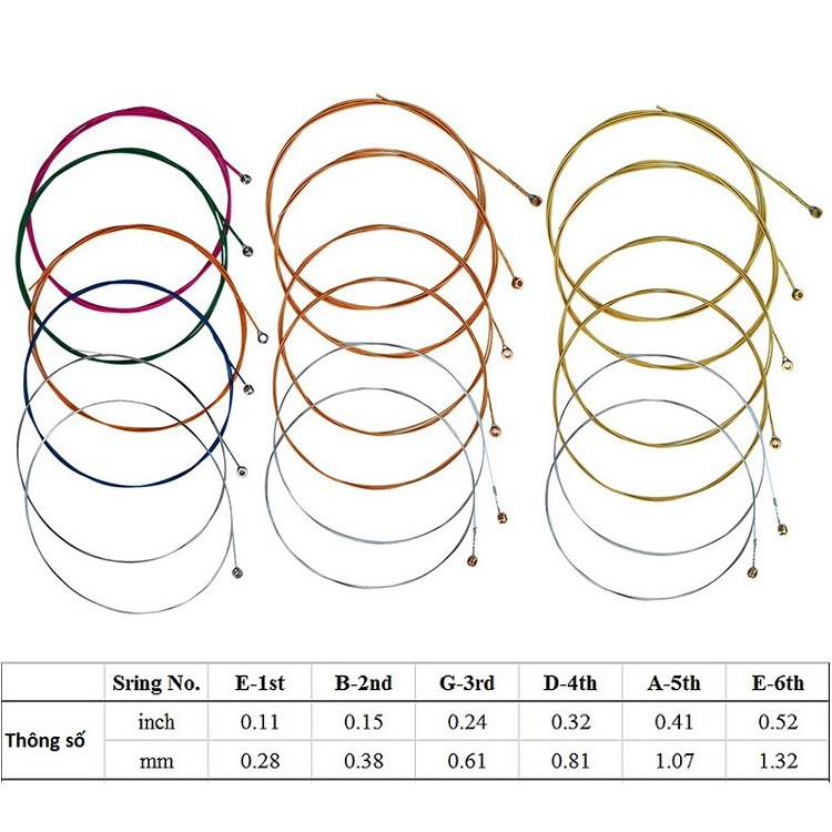BÁN SỈ BỘ 6 DÂY ĐÀN GUITAR ACOUSTIC LÕI THÉP BỌC ĐỒNG GIÁ RẺ (CÁC MẦU SẮC)