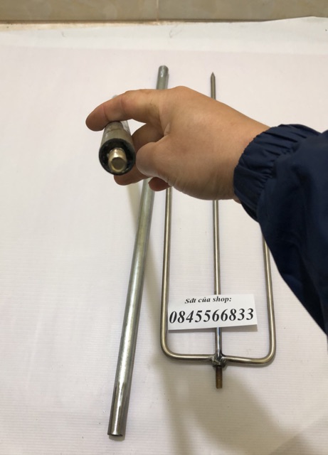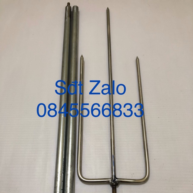 Xiên được thiết kế lắp giáp , có ốc xoáy lắp giáp với nhau , cán cầm dài 140cm làm bằng ống kẽm không dỉ , cán được chia làm 2 đoan được nối với nhau 70cm + 70cm rất tiện khi sử dụng , tháo ghép tiện lợi ,xiên làm bằng phi 10 inox 304 vô cùng chắc chắn , xiên thanh giữa dài 65 cm , hai thanh bên cạnh dài 38cmGiá USCR