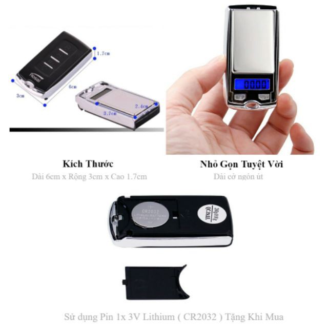 Giới thiệu Cân Tiểu Ly Điện Tử Mini dạng remote Móc Khóa ô tô Chính Xác Cao 200g 0.01g KC200