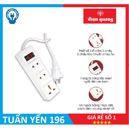 Thiết Bị Điện Gia Dụng > Mạch điện & Phụ tùng > Ổ cắm điện & Dây nối || Ổ Cắm Điện Quang ĐQ 002A-02 (3 lỗ)Còn hàng