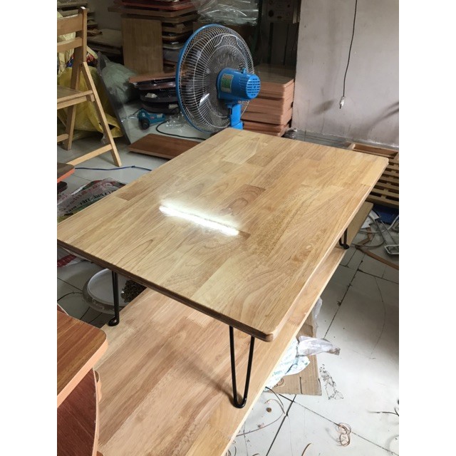 Bàn gỗ chân sắt đenKích thước : rộng 50 dài 100 cao 28cm
