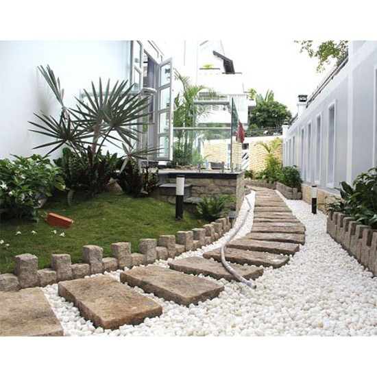 Sỏi trắng được dùng trang trí sân vườn cây cảnh hoa lá để bàn tuyệt đẹpKích thước sỏi
