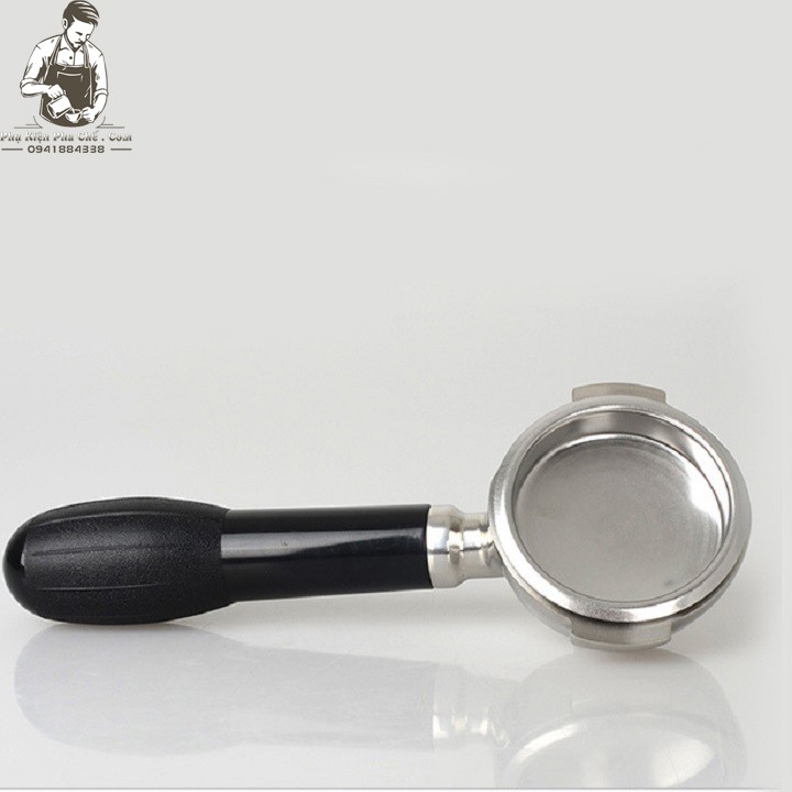 Bước 1- Lắp phin mù vào tay đơn. (nên dùng phin đơn vì nó vệ sinh nhanh hơn, mạnh hơn)
