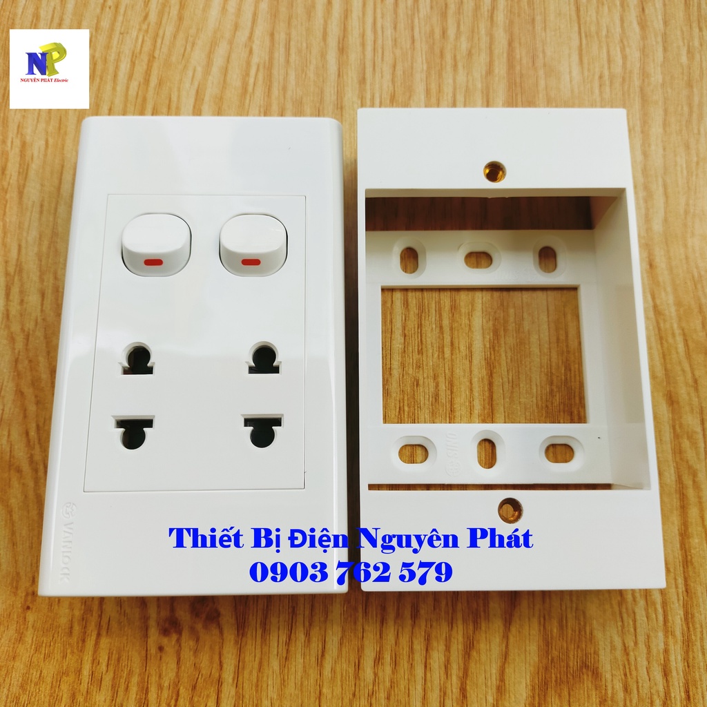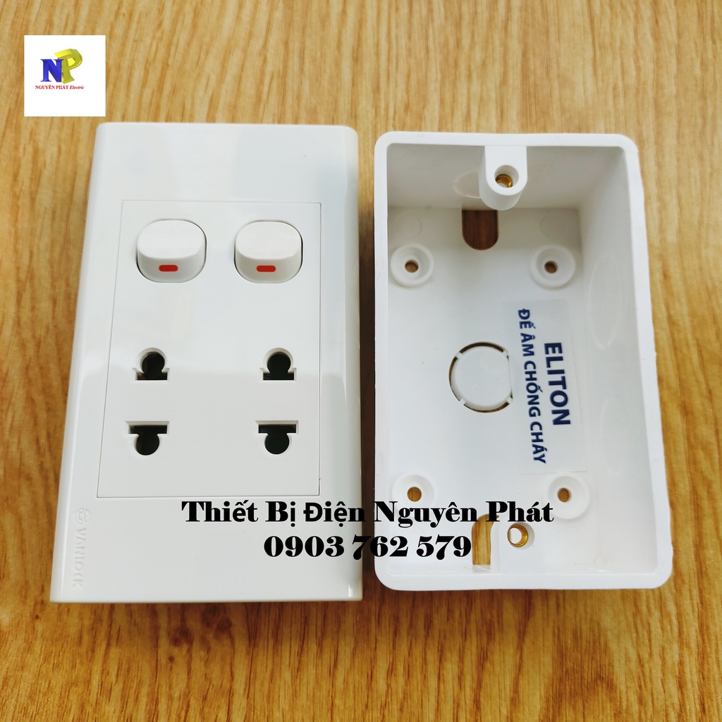 + Đế công tắc làm bằng nhựa Polycarbonate chống cháy - nguyên chất ( không có mùi khét như nhựa phế liệu, tái sinh)