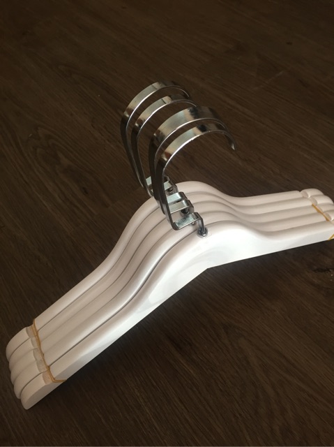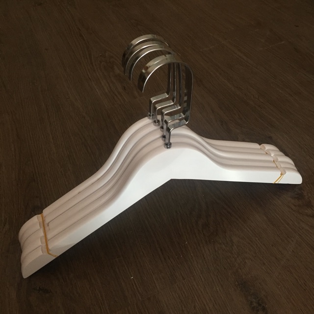 Nhà cửa & Đời sống > Sắp xếp nhà cửa > Mắc áo || móc gỗ treo quần áo Nam Nữ màu trắng đầu móc mạ vàng.Còn hàng