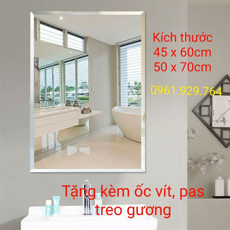 - Gương kích thước ngang 45 x Cao 60cm x dầy ~5mm- Gương kích thước Ngang 50 x Cao 70cm x dầy ~5mm