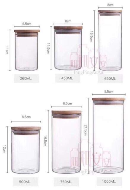 HŨ THỦY TINH 75ML, 500ML, 450ML, 350ML... NẮP TRE TIỆN GIẢ GỖ khác.Cửa hàng có sẵn các dung tích: