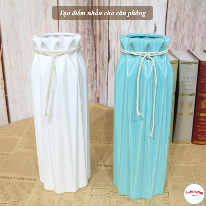 Giới thiệu Lọ Hoa Nhựa Giả Gốm Để Bàn Tặng Kèm dây thắt nơ – 00688