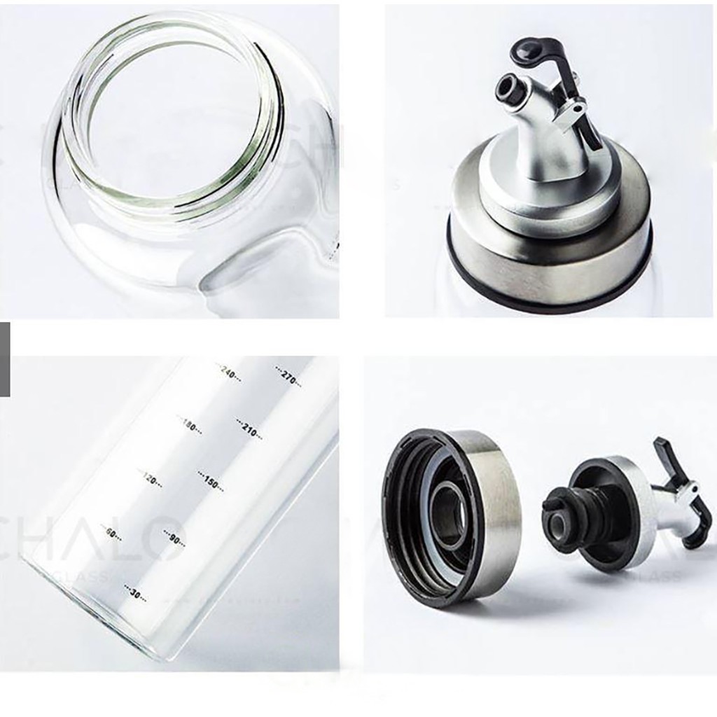 Bình gia vị vòi rót thân tròn 170ml - 300ml - 500ml sở hữu chất liệu thủy tinh chịu nhiệt Borosilicat trong suốt và đẹp mắt.