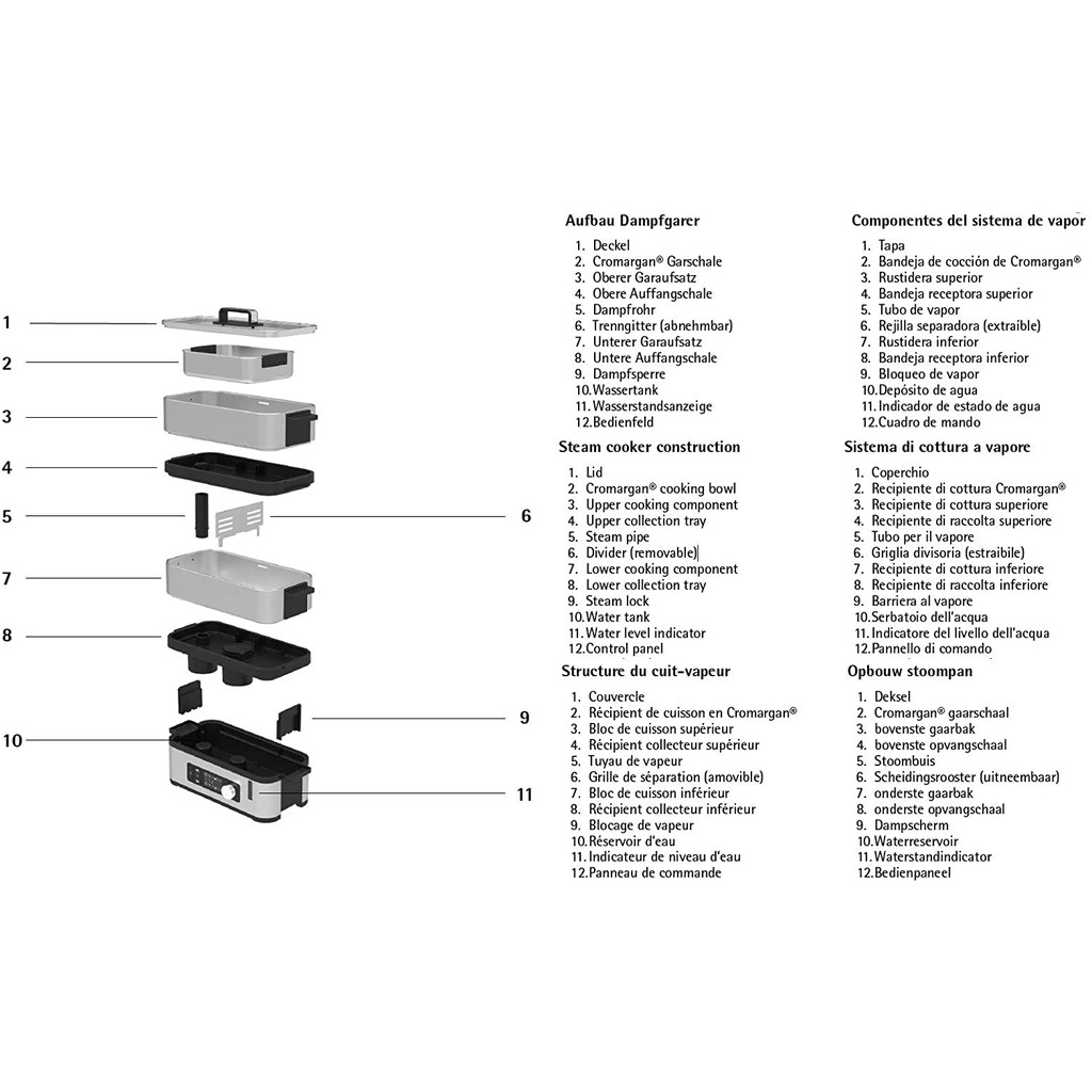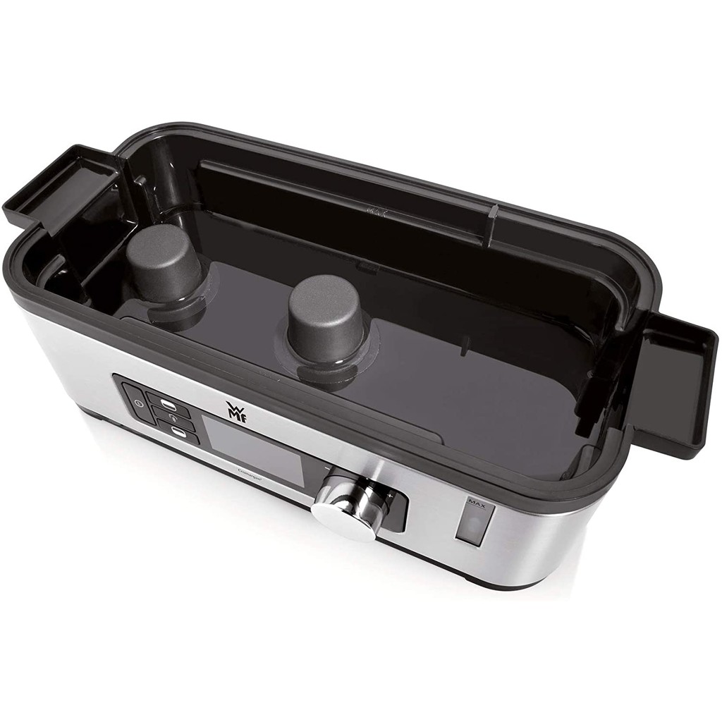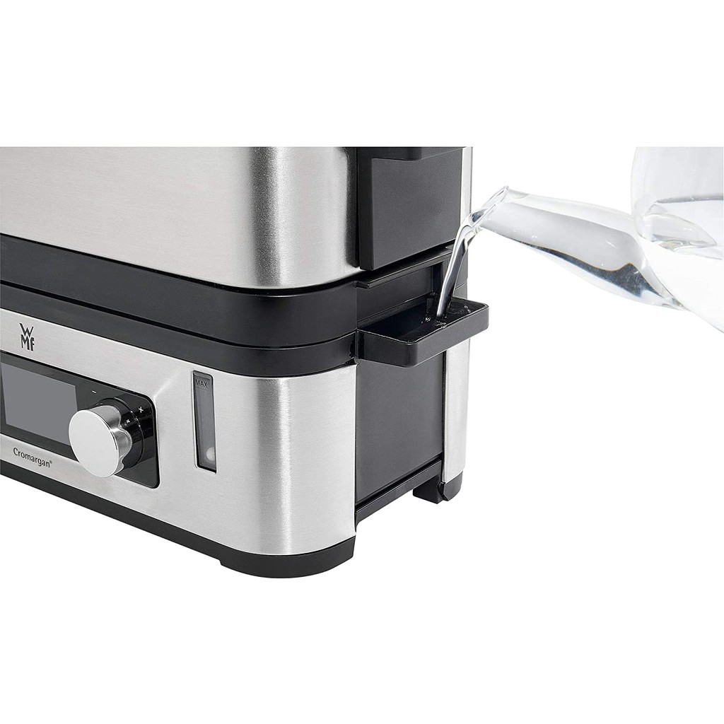 Nồi hấp WMF KÜCHENminis làm bằng Cromargan với nắp thủy tinh cao cấp giữ đúng những gì tên gọi của nó. Với hình dạng bên ngoài nhỏ gọn, nó đảm bảo nấu ăn lành mạnh, hoàn toàn không chứa BPA và không phụ thuộc vào bếp nấu. Là nồi hấp Cromargan nhỏ nhất, với kích thước chỉ 14,4 x 28,4 cm, nó có thể được sử dụng để nấu thịt, cá, rau và các món ăn phụ ở hai mức công suất 900 watt. Nấu theo kiểu gọi món: Nhờ WMF Easy Steaming với hai khoang nấu riêng biệt, mỗi mức có thể được điều chỉnh riêng để bạn có thể chuẩn bị mọi thứ cùng nhau, nhưng quá trình nấu thực tế không bắt đầu cho đến sau đó, tùy thuộc vào cài đặt.
