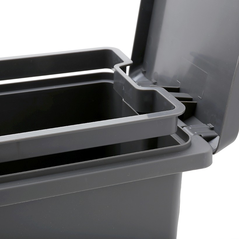 Thùng rác Compact là thùng rác nhựa đạp chân với phần thân được làm bằng nhựa PP, an toàn đối với sức khỏe, vành thùng giúp cố định túi rác gọn gàng.