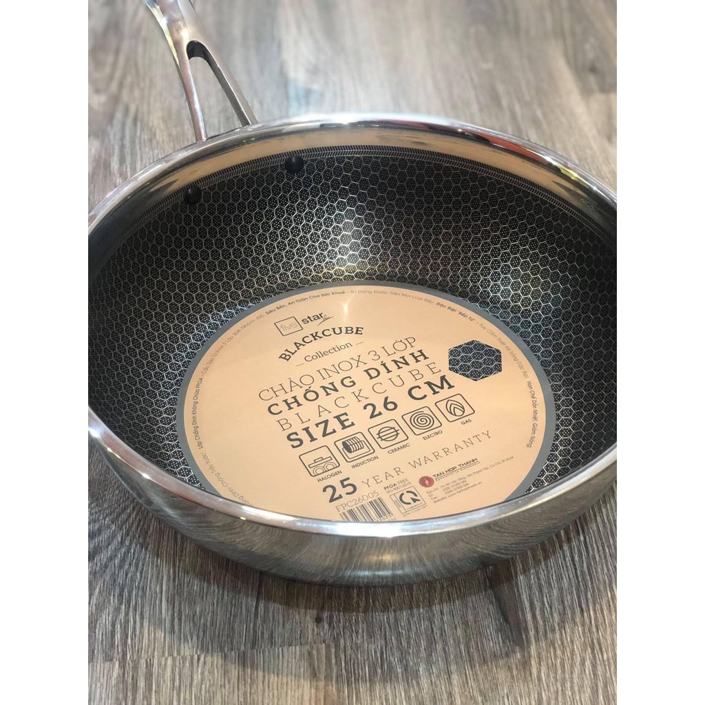 :Kỹ thuật khoan khắc tạo ra các khối inox siêu nhỏ hình tổ ong giúp bảo vệ lớp chống dính bên dưới. Tối ưu hóa khả năng chống chầy xước của lớp chống dính. :bee::bee:
