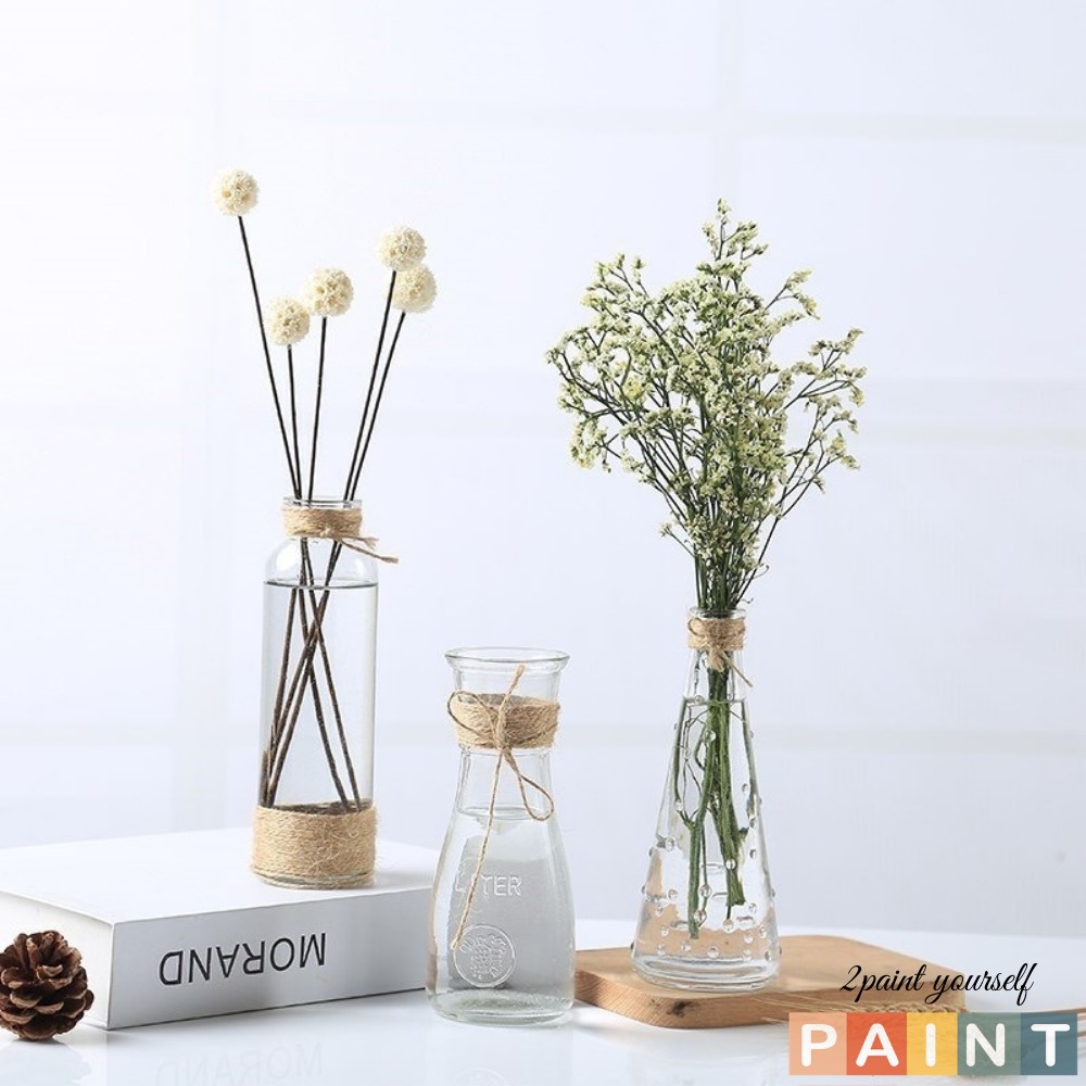 Lọ hoa, Bình thủy tinh tặng dây thừng, dây gai cuốn decor, trang trí vintage, Lọ hoa thủy tinh decor Bình hoa trang trí phòng khách đẹp• Chất liệu thủy tinh trong suốt, sáng bóng, tô điểm bình hoa thêm xinh.