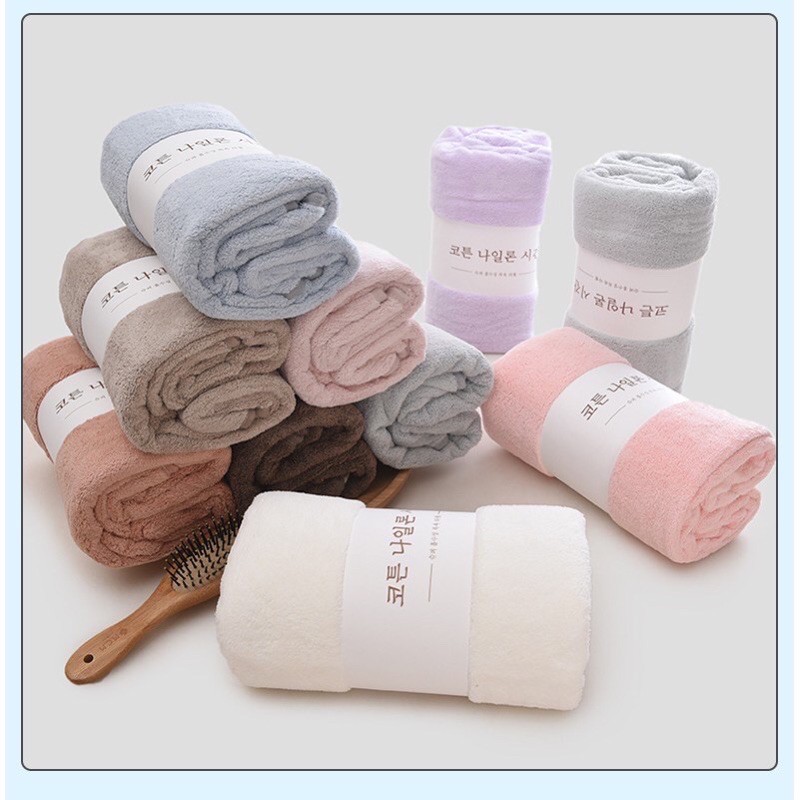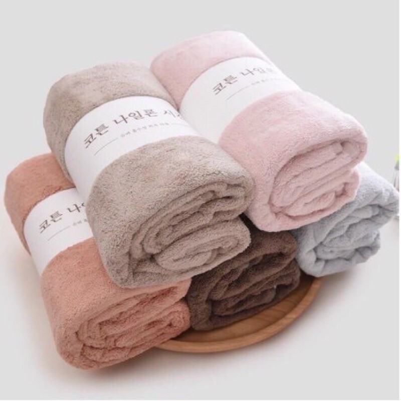 Khăn tắm HÀN QUỐC siêu mịn thấm nước cao cấp size lớn 70x140cm, Bo viền– Siêu thấm hút nhanh; khử mùi, kháng khuẩn, mềm mại