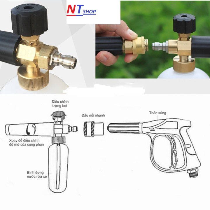 cam kết không hài lòng ,trả lại hàng,hoàn lại tiềnBình phun bọt tuyết 1L lắp máy rửa xe + khớp nối nhanh