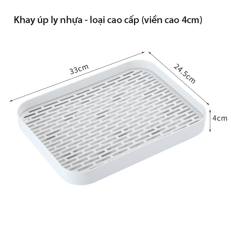 Shop có 2 loại khay nhựa úp ly côc:☑️ Loại thường: Kích thước dài 31 * rộng 17.5 * cao 2cm/Loại này viền khay thấp 2cm, gọn gàng tiện lợi