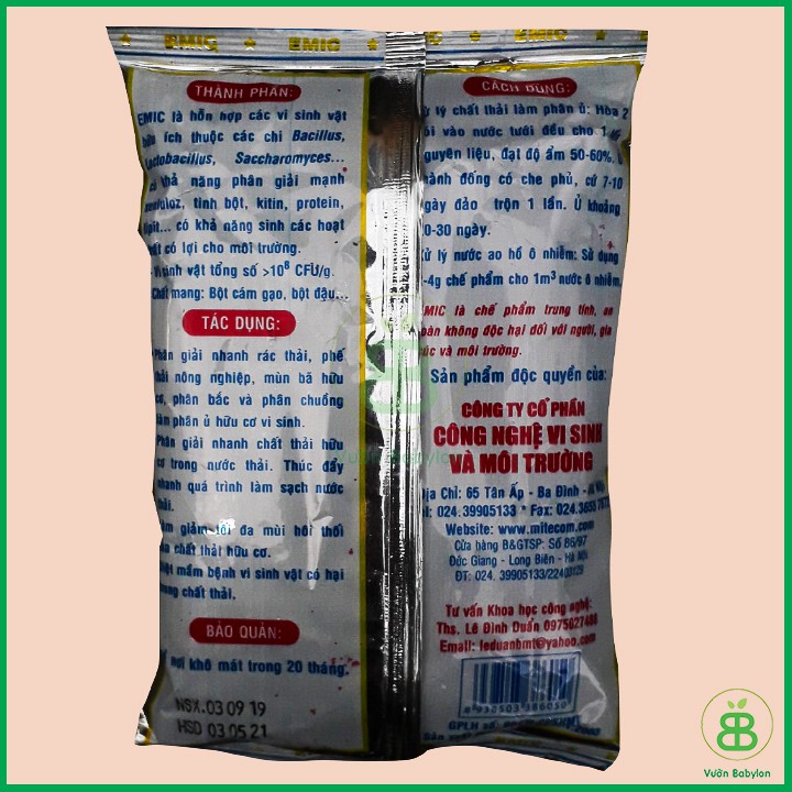Chế phẩm ủ rác nhà bếp - chế phẩm vi sinh ủ phân, khử mùi hôi Emic 200g
