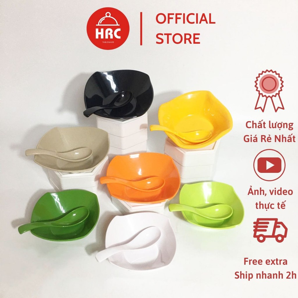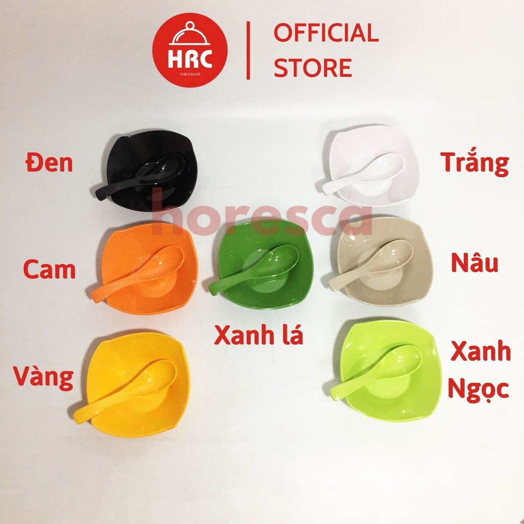 Nhà cửa & Đời sống > Bộ đồ bàn ăn > Tô || Bát đựng chè, tô chè vuông nhựa melamine kèm thìa đủ màuCòn hàng