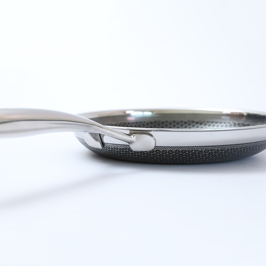 • Tay cầm dài 20.3cm bằng Inox đúc rỗng, kỹ thuật đặc biệt ghép nối với thành chảo nên không nóng