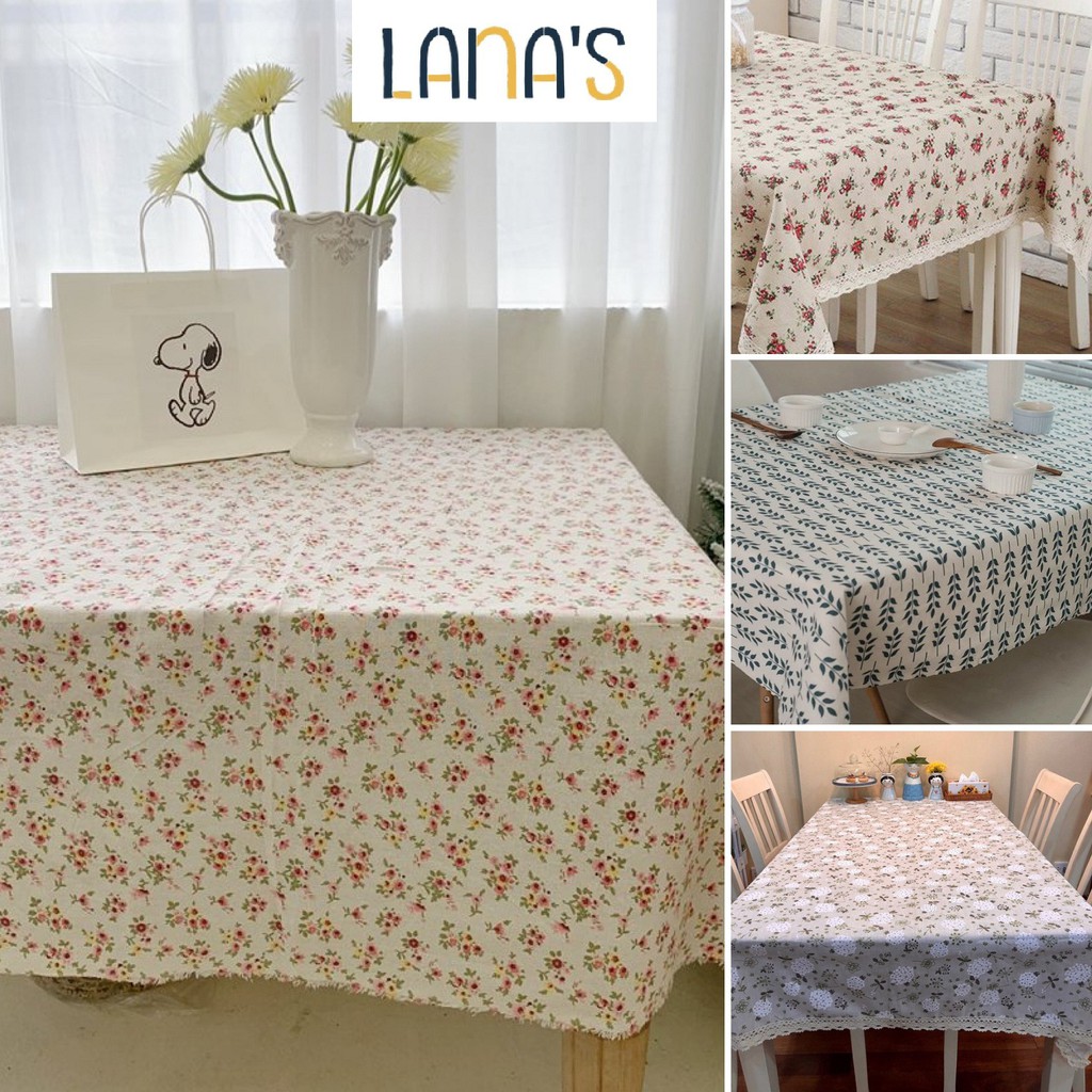 Nhà cửa & Đời sống > Trang trí nhà cửa > Khăn trải bàn || Khăn Trải Bàn Vải Canvas Chùm Hoa, Chùm Lá Viền Ren Vintage Hàn QuốcCòn hàng