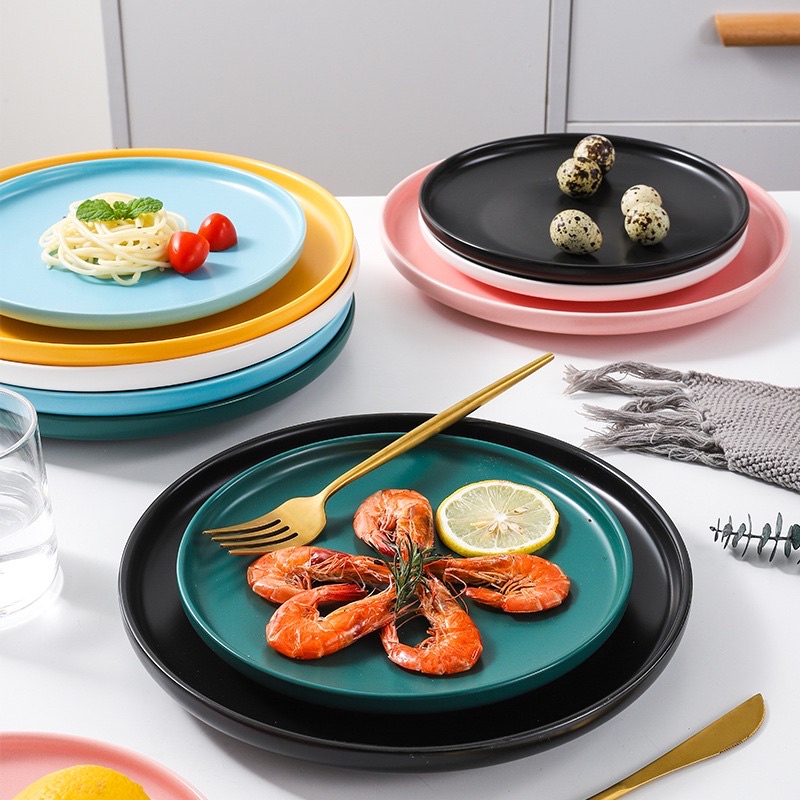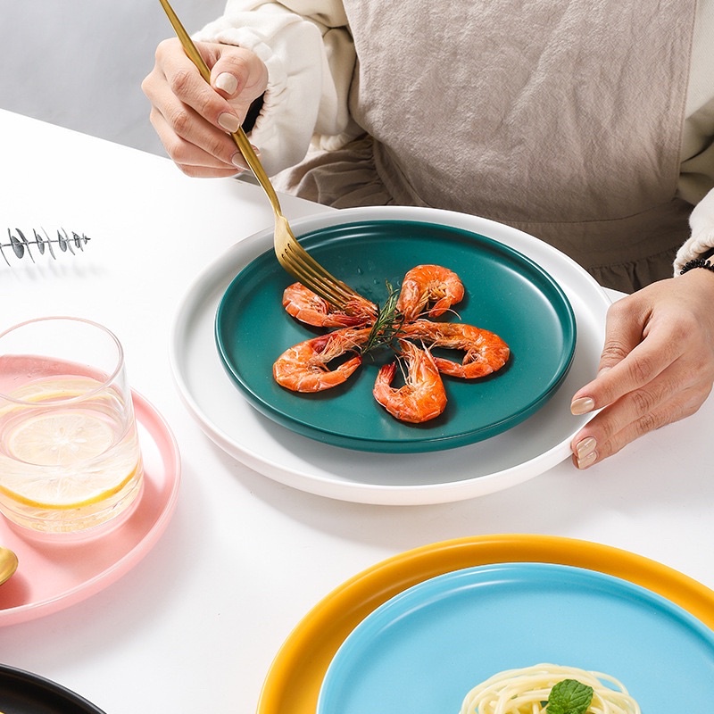 Nhà cửa & Đời sống > Bộ đồ bàn ăn > Dĩa || (Sẵn)Đĩa sứ tròn trơn màu pastel ,trang trí phong cách Bắc Âu, đĩa sứ cao cấpCòn hàng