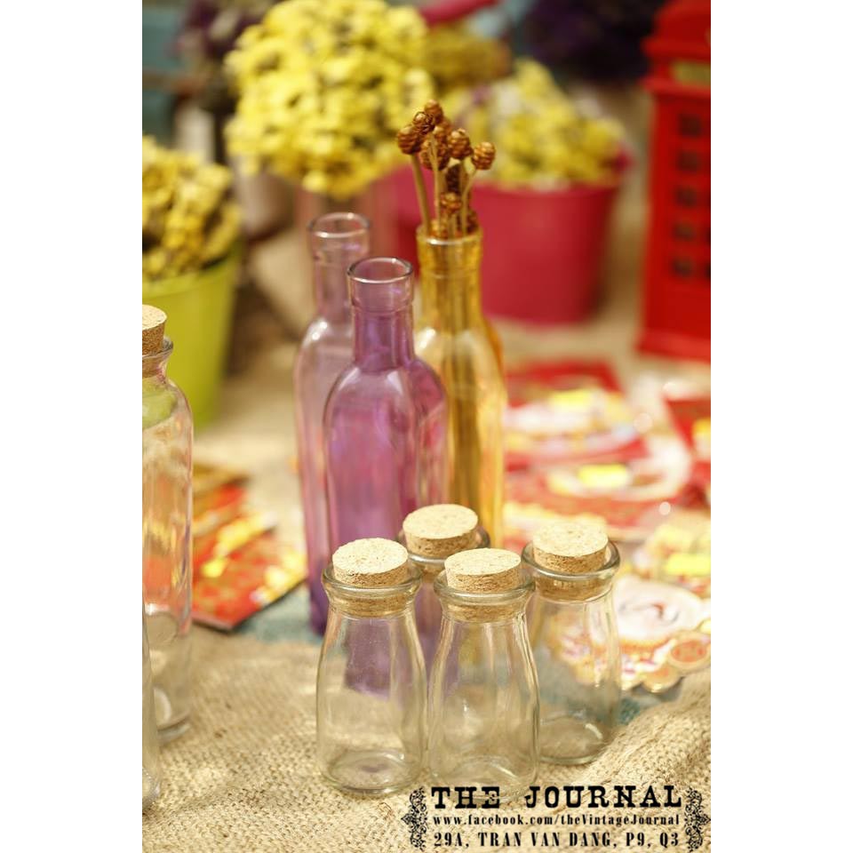 Chai thuỷ tinh nút bần/ nút gỗ- Lọ 50ml: 10k