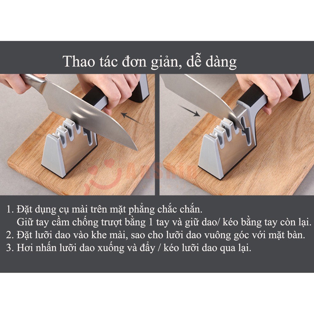 - Khe số 3 đá kim cương giúp mài thô lưỡi dao, có thể dùng để liếc dao hàng ngày, giữ lưỡi dao luôn sắc bén