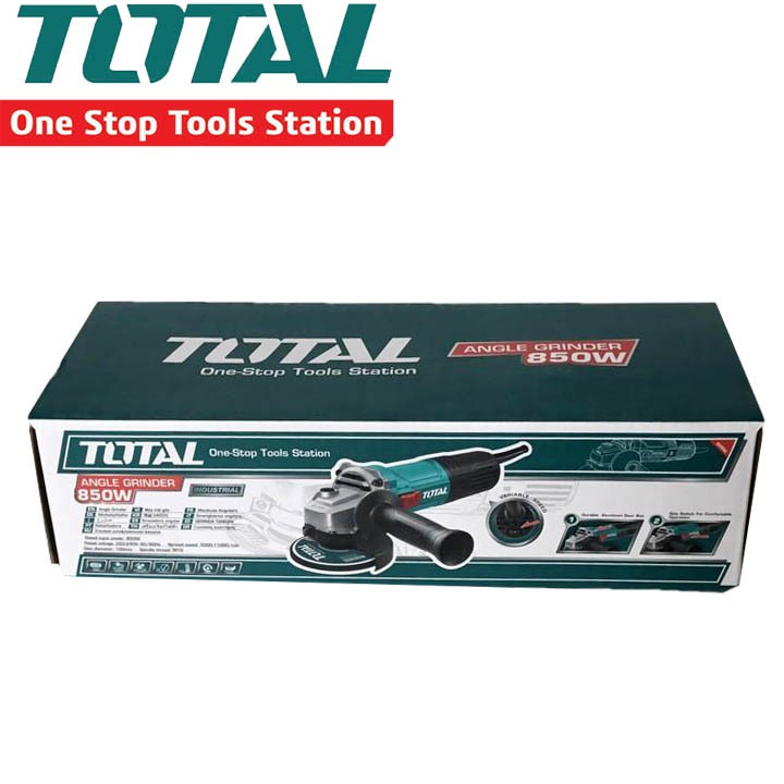 (100mm) Máy mài góc cầm tay chỉnh tốc độ 850W TOTAL TG108100365Total Tools là thương hiệu mới được nhập khẩu vào thị trường Việt Nam, hứa hẹn sẽ mang đến nhiều trải nghiệm mới cho giới xây dựng và cơ khí. Total là thương hiệu nổi tiếng thế giới cung cấp dụng cụ dân dụng, dụng cụ cầm tay và các máy móc dùng điện, thiết bị an toàn cho gia đình và nhiều công trường xây dựng. Nhãn hiệu Total Tools có nguồn gốc ở Đức và được sản xuất tại Trung Quốc theo các tiêu chuẩn chất lượng của Mỹ, Châu Âu.