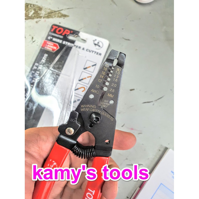 Kìm tuốt cắt dây điện top 6 inch 150mm ly-2028pro chuyên dùng để tuốt dây điện, cắt dây điện với đường kính dây điện từ 0.8mm, 1mm, 1.3mm, 1.6mm, 2mm, 2.6mm với chiều dài là 150mm 6 inch nhỏ gọn cầm gọn trong lòng bàn tay dễ dàng sử dụng. Kìm tuốt cắt dây điện top 6 inch 150mm ly-2028pro được chế tạo bằng hợp kim thép với các phần lưỡi dao tuốt được mài sắc bén chia ra làm nhiều lỗ có đường kính khác nhau được in lên giúp chúng ta biết được đường kính lỗ dây điện nào cần tuốt dây để sử dụng nhanh chóng. Kìm tuốt cắt dây điện top 6 inch 150mm ly-2028pro có phần đầu được làm có răng giúp ra kéo dây điện tốt hơn kết hợp với phần lưỡi dao bên dưới làm sắc bén giúp cắt dây điện một cách hiệu quả. Kìm tuốt cắt dây điện top 6 inch 150mm ly-2028pro có tay cầm được bọc lớp cao su cách điện dày chắc chắn cầm nắm rất êm tay có thể sử dụng lâu mà không bị đau tay.Giá BENJI