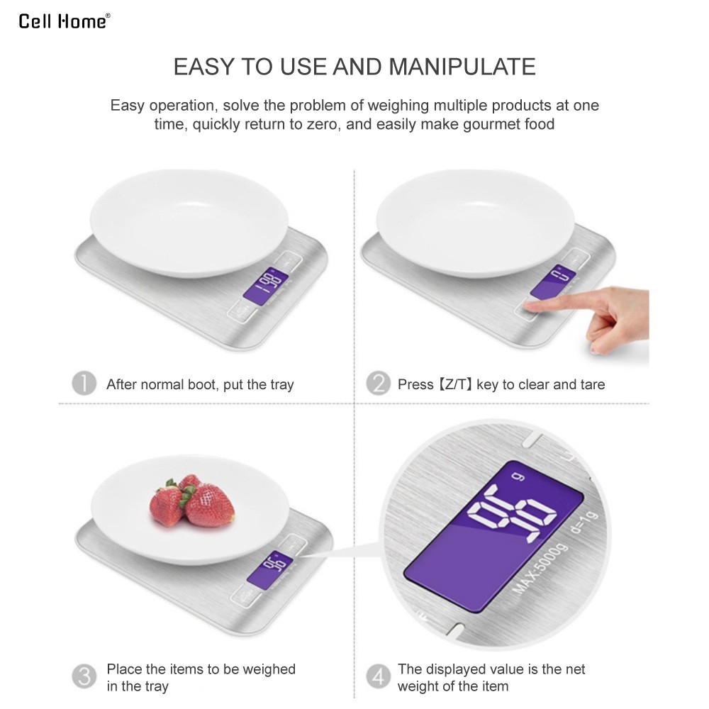 Giới thiệu Cân điện tử nhà bếp tiểu ly (10/5kg - 1g) cân thực phẩm mặt inox màn hình LCD