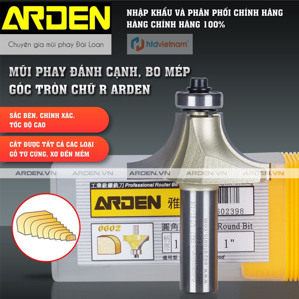 🎯 ARDEN - Mũi phay gỗ đánh cạnh bo mép góc tròn dòng A0602✅ Xuất xứ : thương hiệu Đài Loan