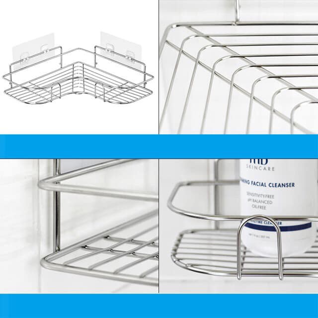- Giá đỡ treo dán góc tường dễ dàng lắp đặt, phù hợp để nhiều nơi như để đồ dùng phòng tắm, đựng mỹ phẩm phòng ngủ, chai lọ gia vị trong nhà bếp. (2 miếng dán 4 chỗ gài)
