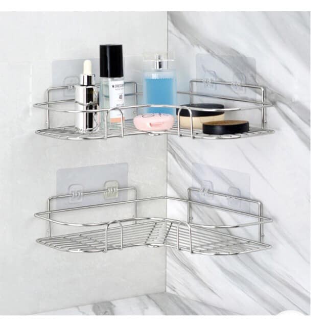 - Kệ góc INOX treo dán góc tường nhà tắm nhà bếp gồm 1 kệ góc và 2 miếng dán để treo kệ- Kích thước kệ: 27x6CM