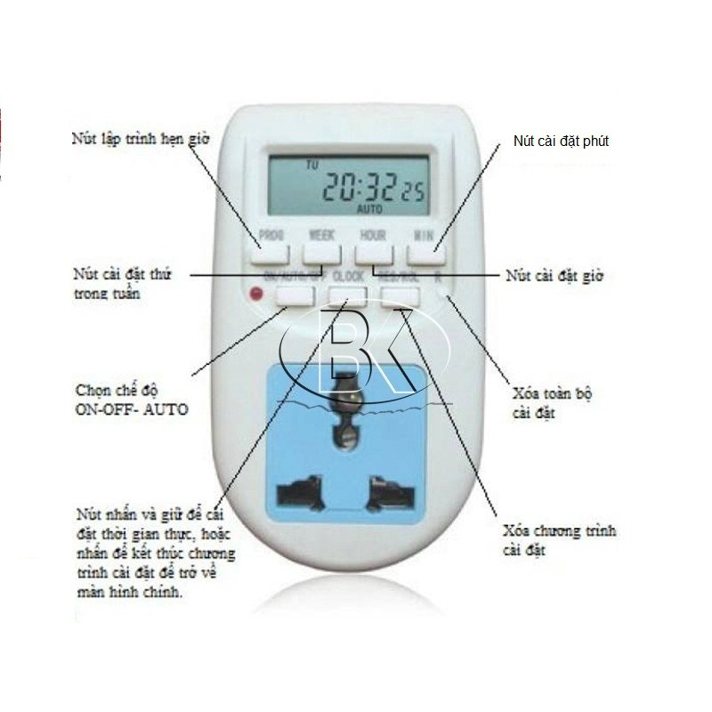 • Ổ cắm hẹn giờ dạng điện tử thông minh, chính xác đến từng phút. Chỉ cần cài đặt lần đầu, sau đó thiết bị sẽ hoạt động hoàn toàn tự động.