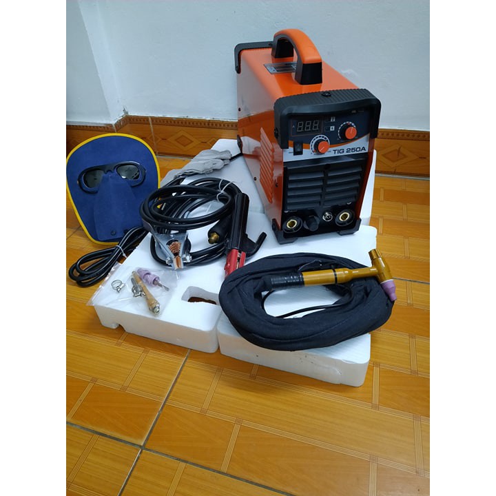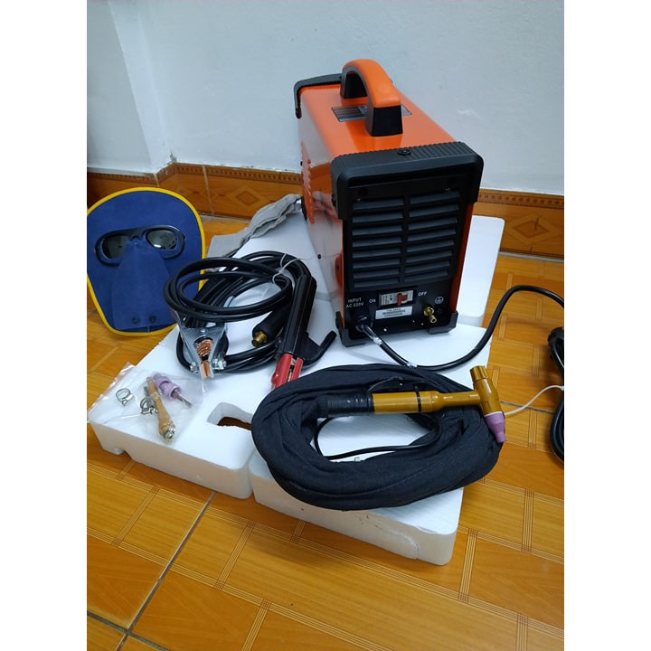 Phụ kiện : kìm hàn 3m, cáp mat 2m và một BỘ SÚNG Tig 4m, bao tay hàn, mặt nạ hàn, cổ dê xiết ống khí