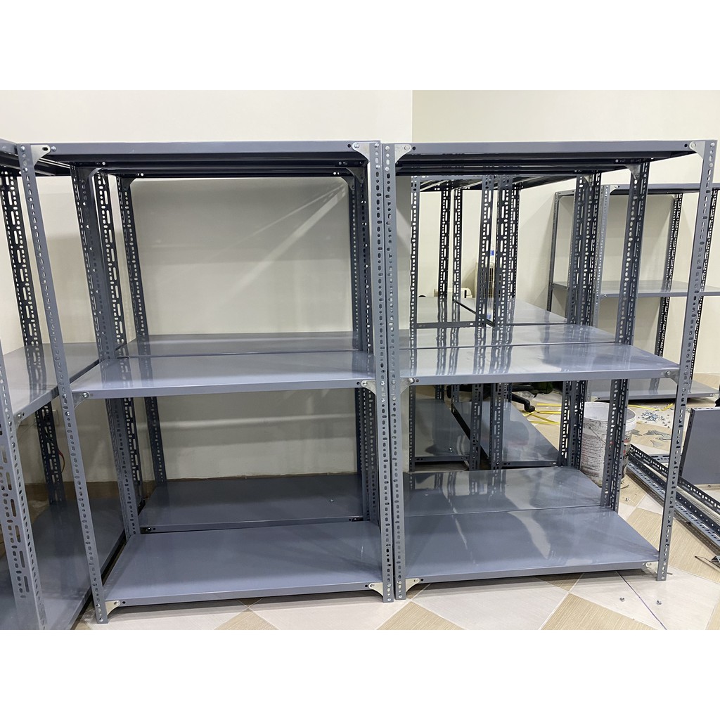 - Phụ kiện: Ke góc cho mỗi kệ sử dụng 8 ke góc 4 góc trên cùng và 4 góc dưới cùng. Bulong sử dụng loại M8X12 đầu tròn cổ vuông định vị kệ vuông góc không bị lệch.