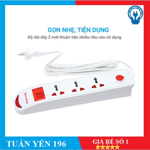 Thiết Bị Điện Gia Dụng > Mạch điện & Phụ tùng > Ổ cắm điện & Dây nối || Ổ cắm Điện Quang ĐQ USB dây dài 2mCòn hàng