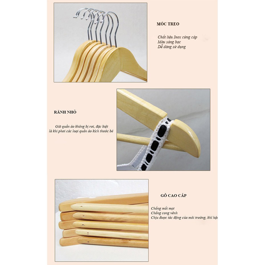 • Móc quần áo gỗ giúp quần áo bạn được giữ nếp tốt hơn