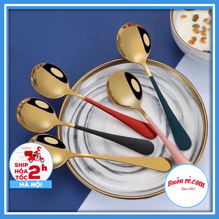 ✔️ Thìa Inox Mạ Vàng Cán Dài Nhiều Màu Với thiết kế tròn, rộng phù hợp khuôn miệng, dễ dàng xúc cơm, soup, cháo...