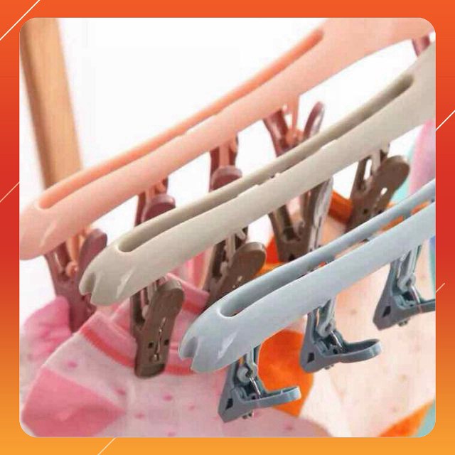 Móc Phơi Quần Áo ,Tất Có 8 Kẹp Tiện Dụng- MÓc có 8 kẹp tiện dụng phơi tất mùa nồm