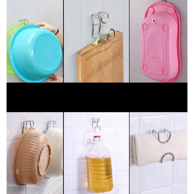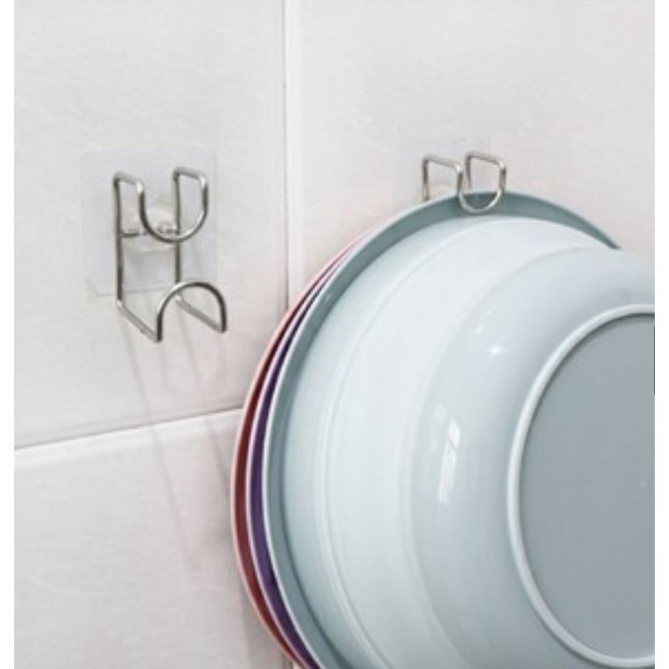 Công dụng Móc treo dán tường: Móc treo đặc biệt có thể giữ nhiều thau chậu cùng lúc.