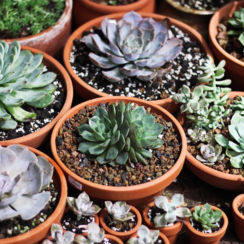 Chậu đất nung thấp trồng cây sen đá, xương rồng màu nâu