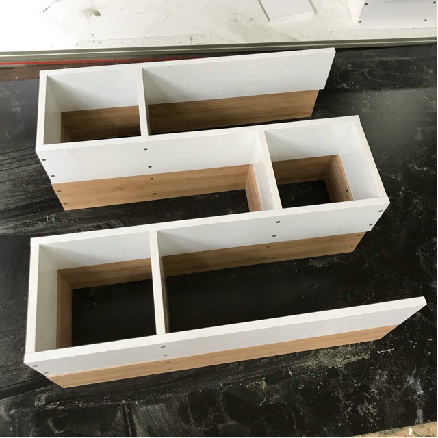 - Chất liệu gỗ: Gỗ Mdf lỏi mịn phủ melamine dày 14mm. Ưu điểm chống công vênh, mối mọt, chống trầy, chống thấm nước.