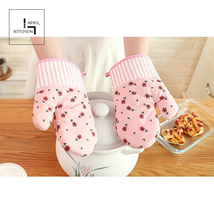 Găng tay lò nướng làm bếp vãi cotton mềm mịn chịu nhiệt tốt chống trượt 26x17cm GTB01
