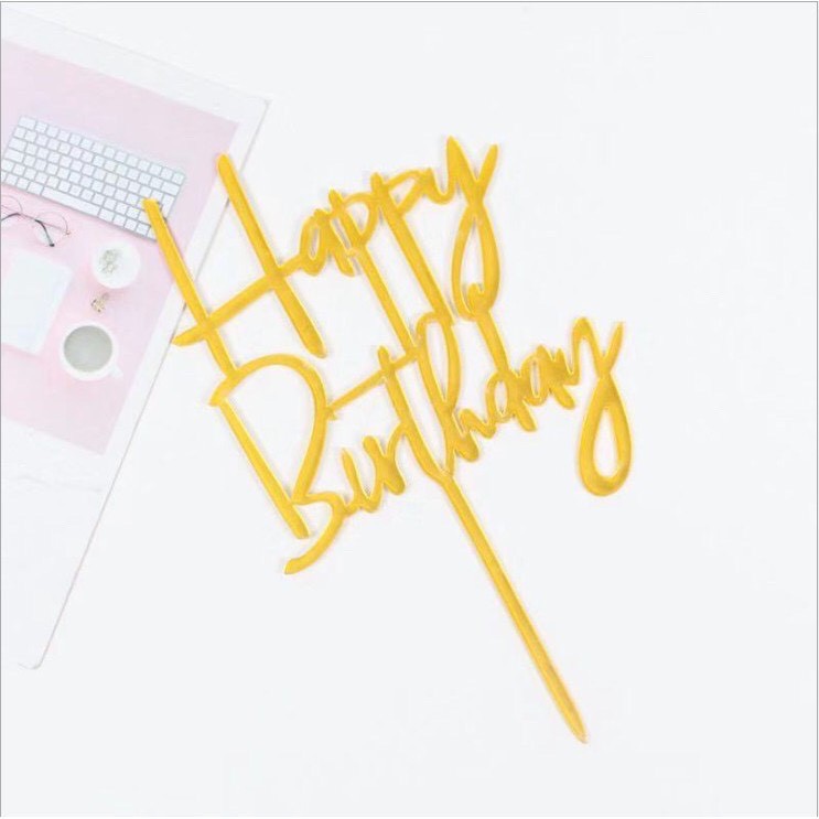 - Meka Happy Birthda trang trí bánh kem được làm bằng nhựa tráng gương cao cấp an toàn khi sử dụng
