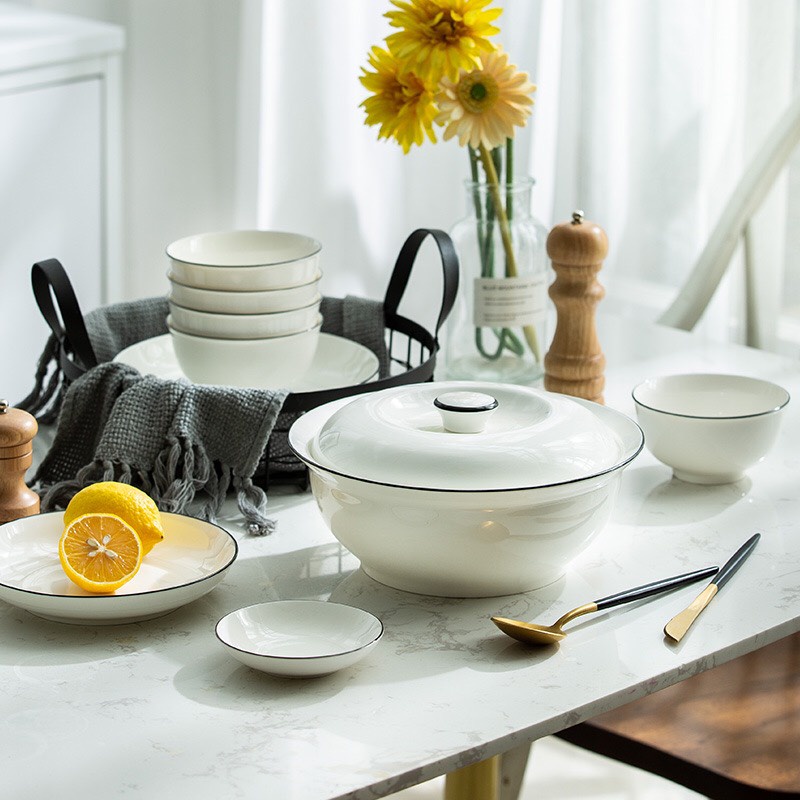 Nhà cửa & Đời sống > Bộ đồ bàn ăn > Tô || BÁT ĂN CƠM BÁT SỨ TỐI GIẢN TRẮNG VIỀN ĐEN (BÁN LẺ MÓN)- S4Còn hàng