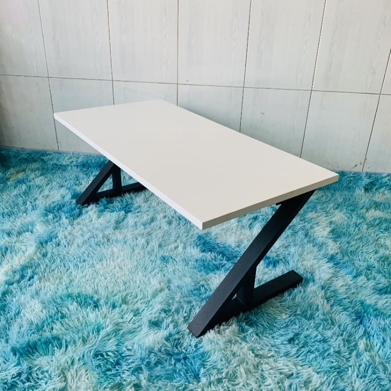 Bàn học, bàn làm việc chân sắt chữ Z gấp bệt (R40×D80×C35cm) mặt MDF trắng siêu đẹp
