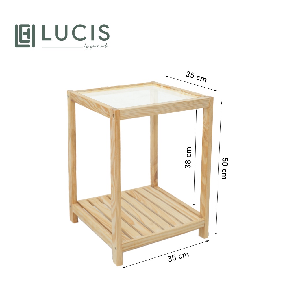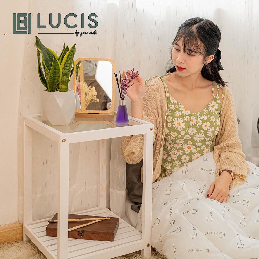 Kệ táp kính đầu giường 2 tầng mặt kính LUCIS màu trắng cao cấp để đồ, đèn ngủ