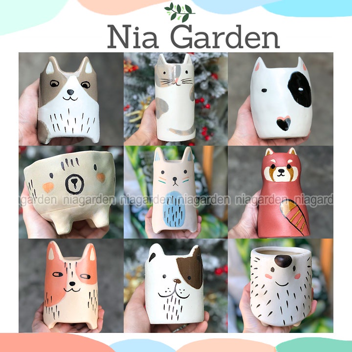 Nhà cửa & Đời sống > Làm vườn > Chậu cây || Chậu mèo chó thỏ men rạn trồng cây để bàn sen đá xương rồng mini Nia Garden N4Còn hàng